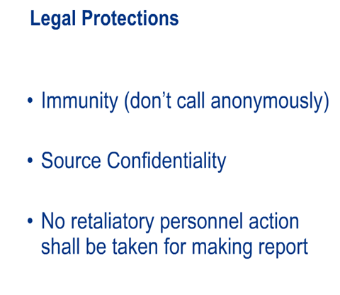 - New York State law provides confidentiality to those who make a report.