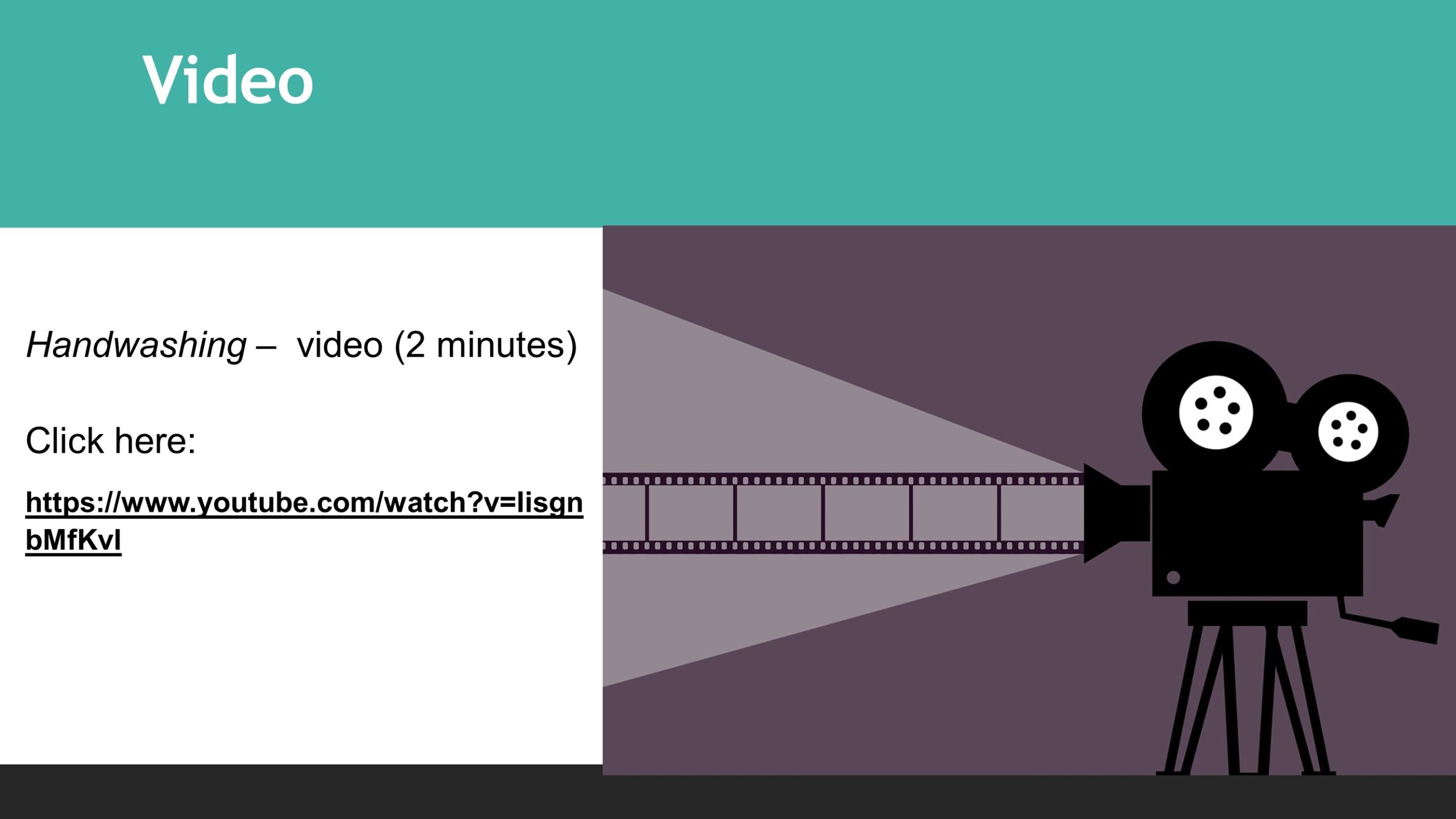 To access Hand Washing video, click here – https://www.youtube.com/watch?v=IisgnbMfKvI