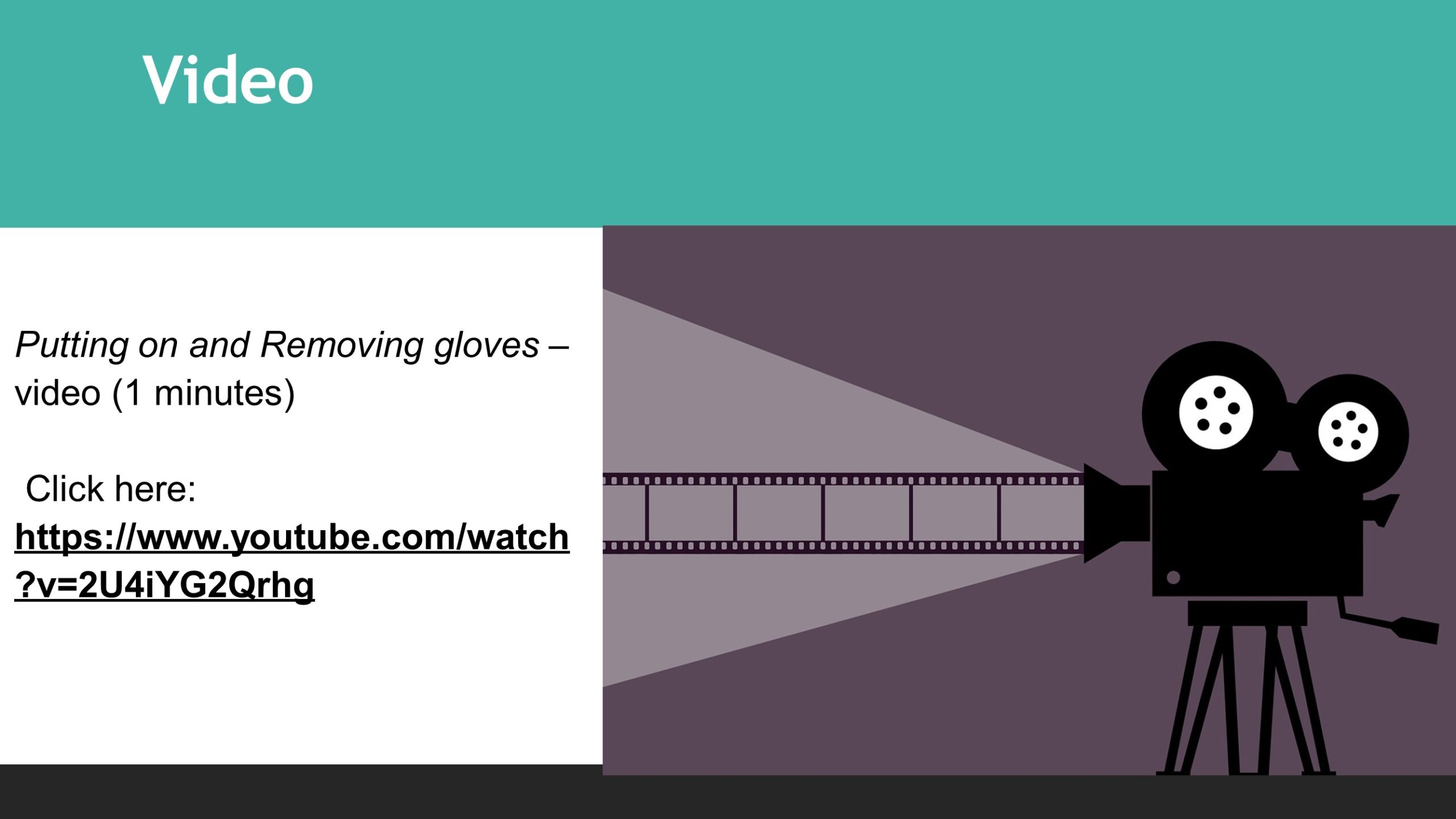 To access “Putting on and Removing gloves” video, click here: https://www.youtube.com/watch?v=2U4iYG2Qrhg