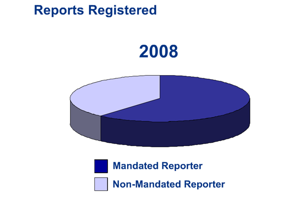 - This graph illustrates the reporting trend in New York for 2008. Notice that “registered reports” received from mandated reporters exceeds the number of reports “registered” from non-mandated reporters.